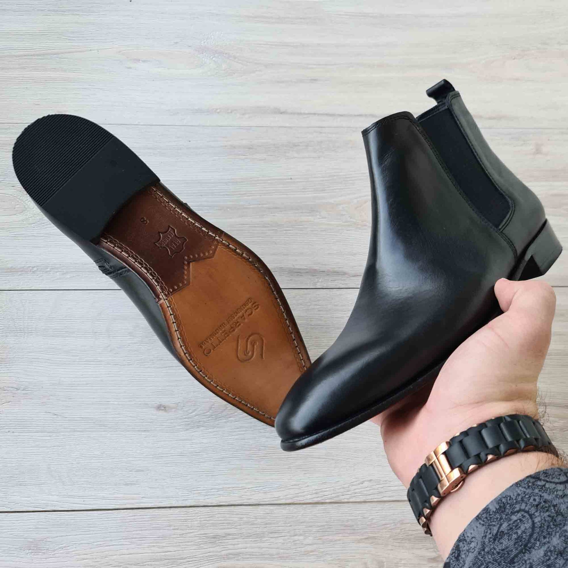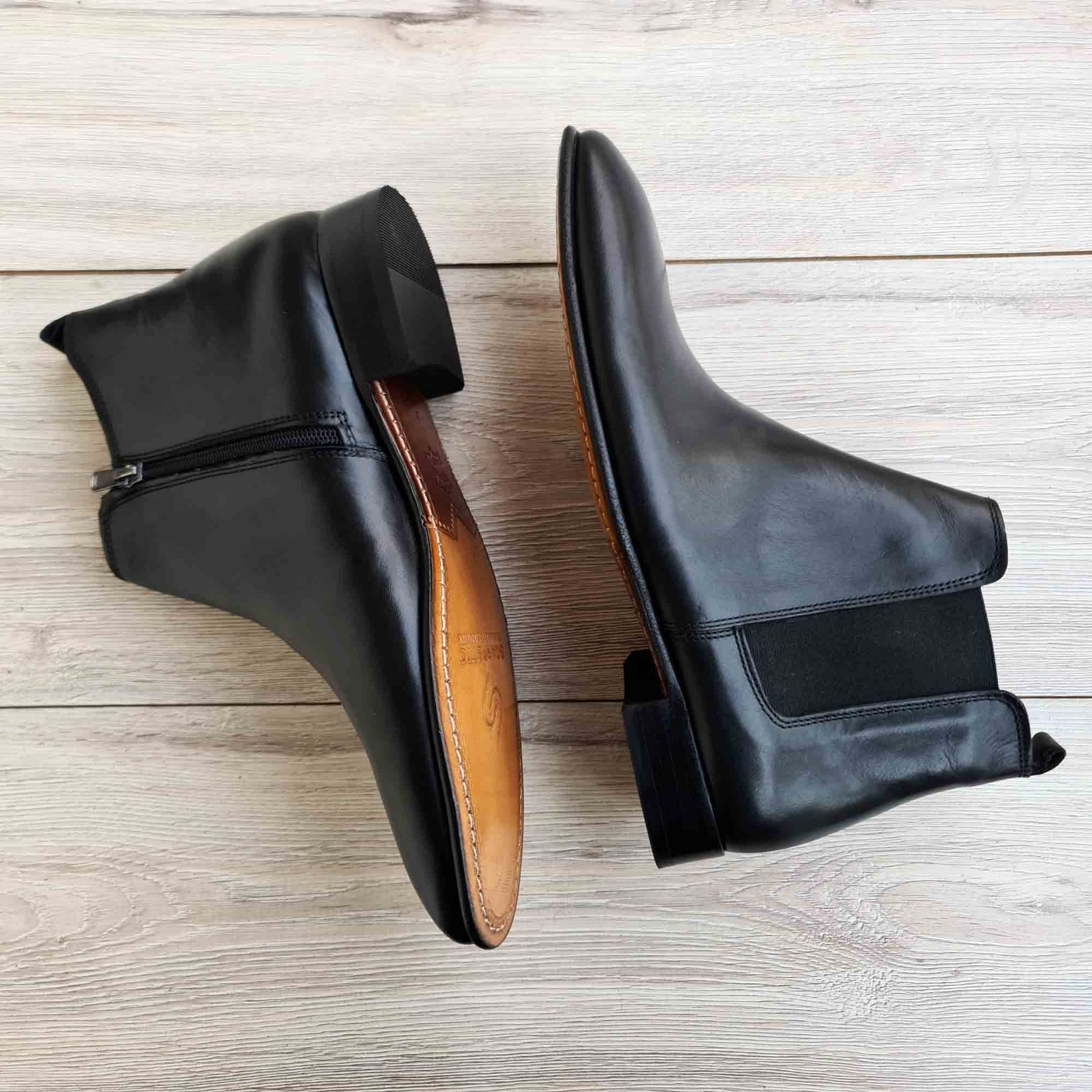 • Sole: Durable and stylish tan leather with a protective rubber heel.
