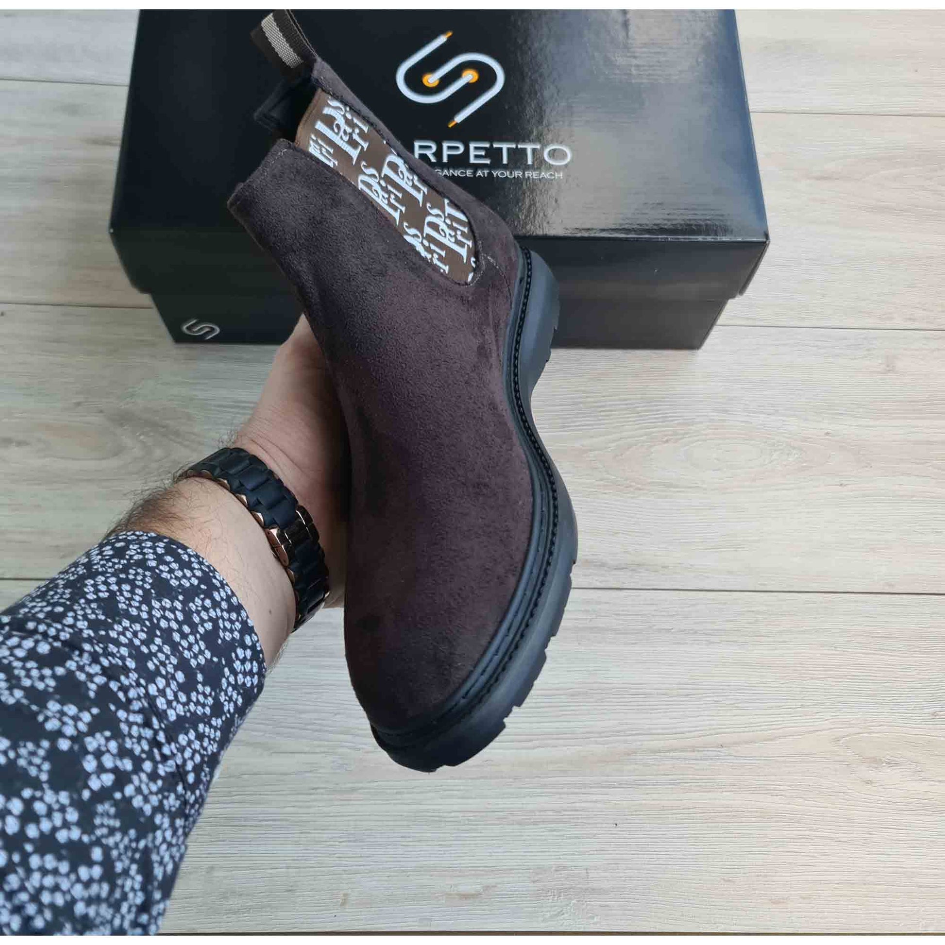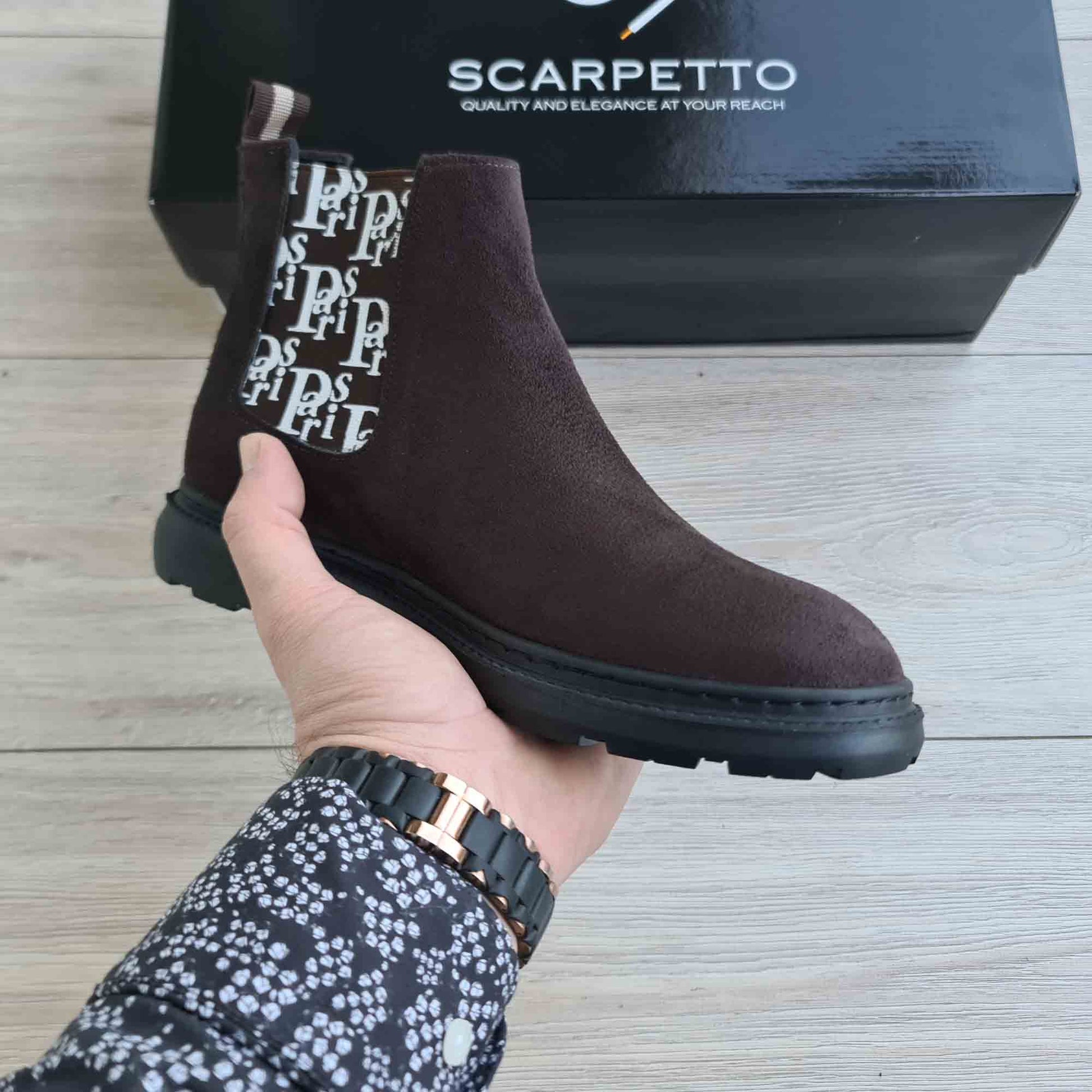 Paris Chocolate Men's Genuine Suede Leather Boots