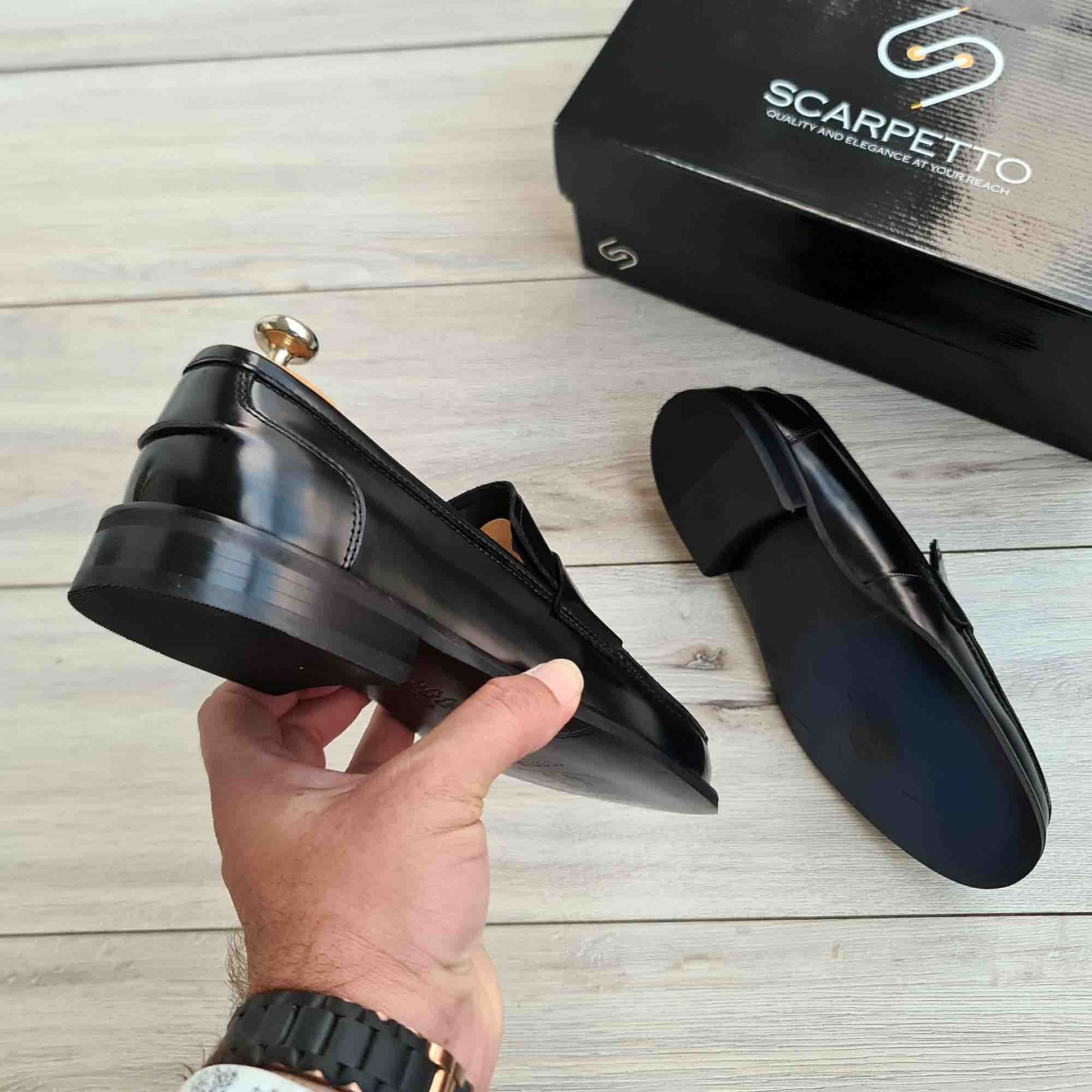 Expertly crafted with polished leather and a neolite sole, these men's loafers combine classic style with durability. Perfect for any occasion, these loafers offer a comfortable fit and a sleek, polished look. Don't settle for anything less than the best in men's footwear with these timeless leather loafers.