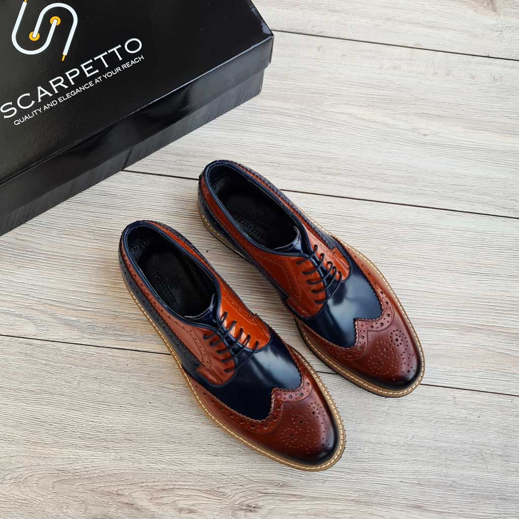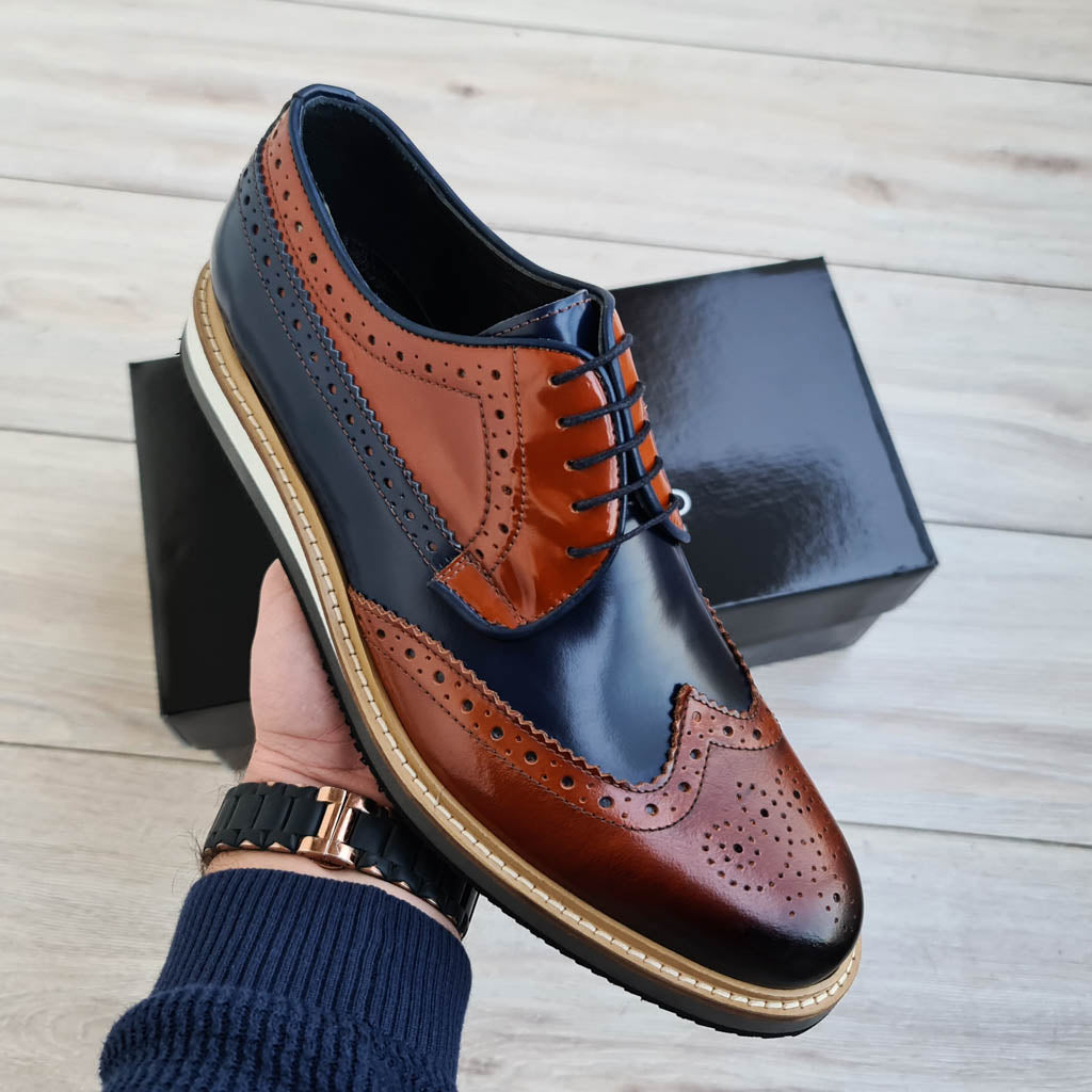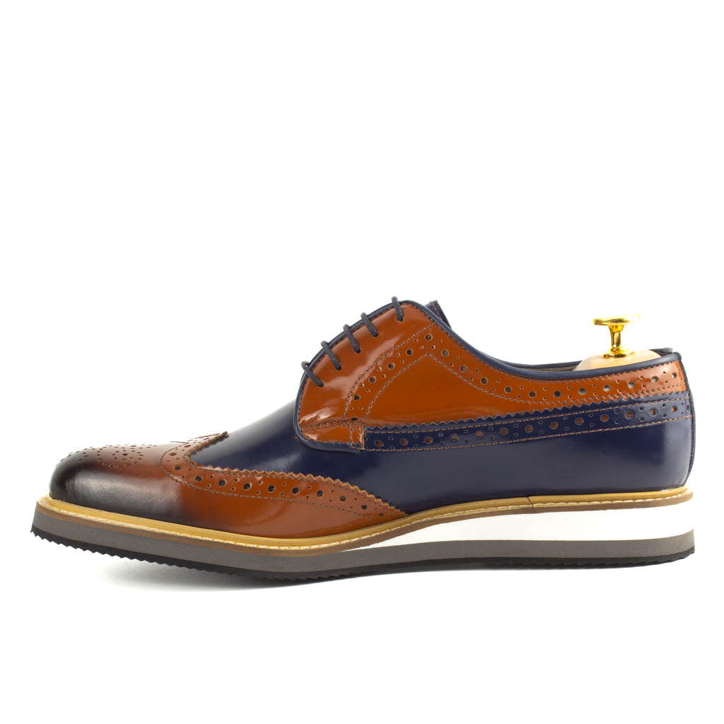 Vestito Brown-Navy Men's Wingtip Leather Derby Dress Shoes